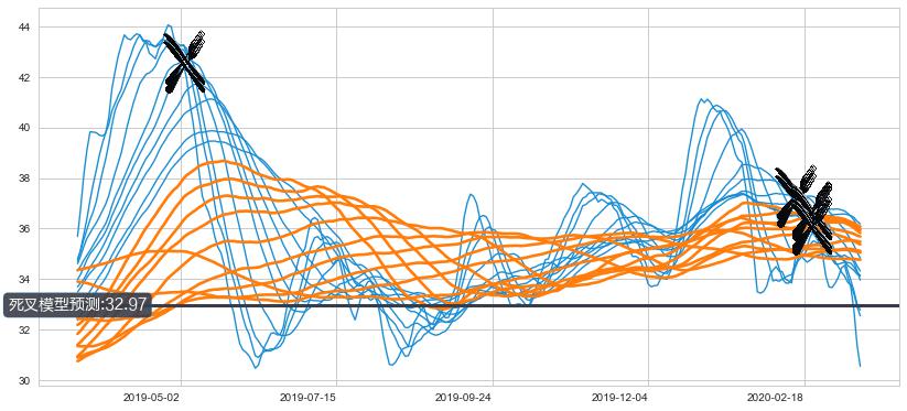 ➣ 60小时均线于(2020-02-20: 36.58)形成【死叉】基于【死叉历史模型】预测死叉后最低波谷价格: 33.07, 死叉后最低价格28.08,已经下跌超出预测最低波谷价格, 预期反弹