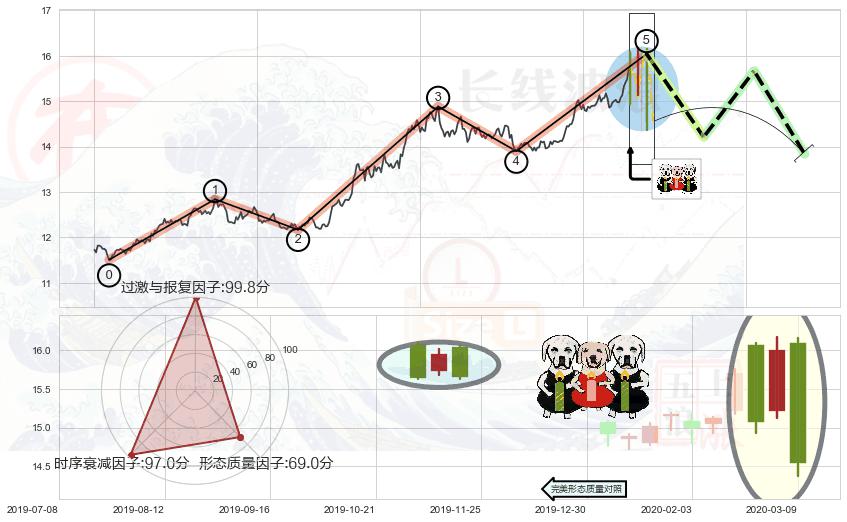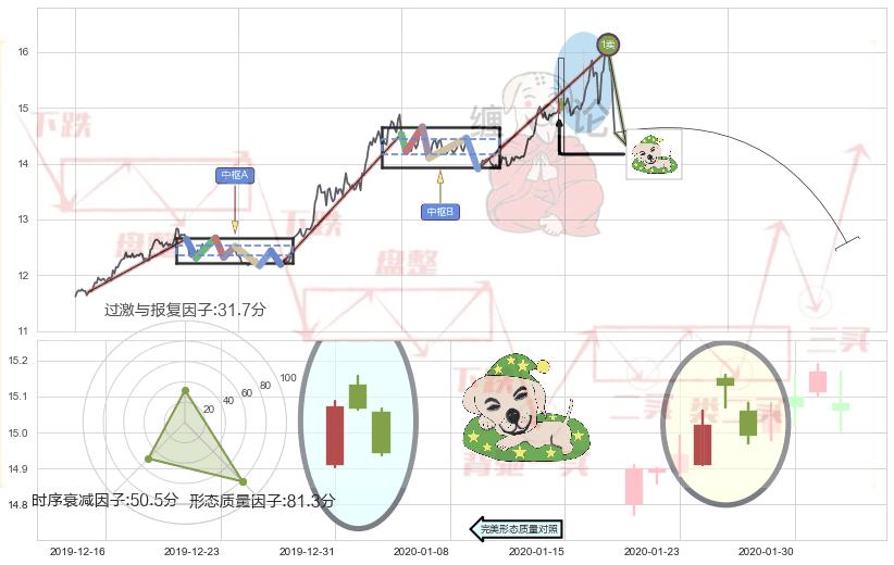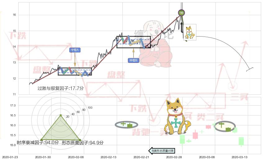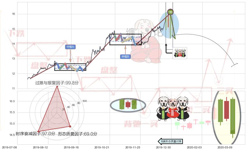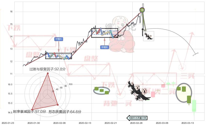 ➢ 🕰 价格走势在2020-02-24至2020-03-09期间形成两黑夹一红,残存影响值:-5.22