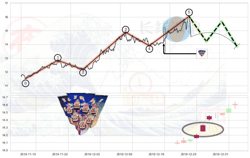 ➣ 波浪理论:猜想止涨 → 下跌 →【拐点】浪5已完成 → 大趋势均值回复