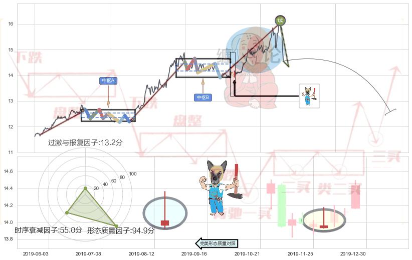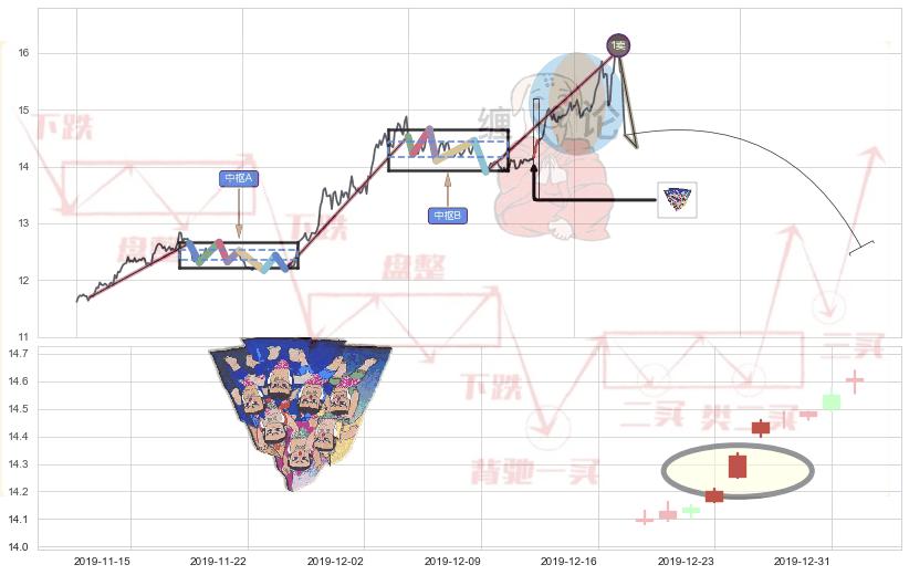 ➣ 【中枢B】:2019-09-05-2019-11-11,中枢由6笔构成,共48交易日, ZG=14.46, ZD=14.22