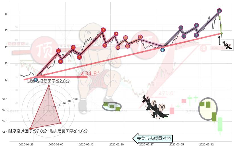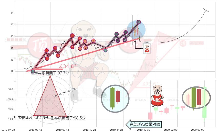 从2019-11-11至2020-03-12,共包含84个交易日,阶段股价上涨7.93%,阶段股价变动位移路程比: 1 : 6,上涨趋势角度: 35.6
