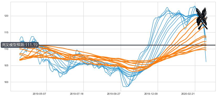 📉 多条均线基于【死叉历史模型】预测最低波谷价格的平均值: 111.19
