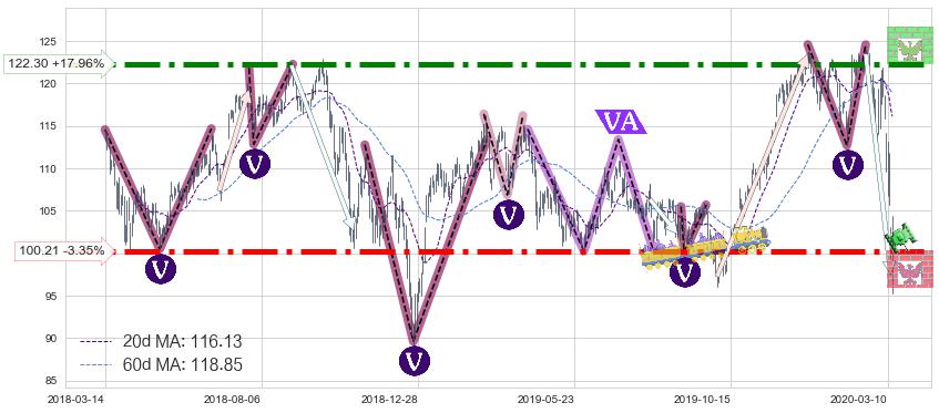 ♘ 阻力价格位122.30,可信任强度98.29%,距离最后交易2020-03-13形成的收盘价格103.68相差 +17.96%