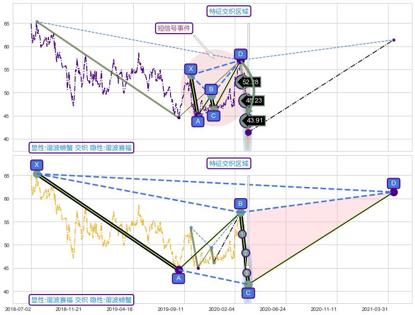 ➢ 谐波螃蟹属【短级别信号事件】谐波赛福属【长级别信号事件】长短周期组合信号事件, 短长事件长度比23.74%
