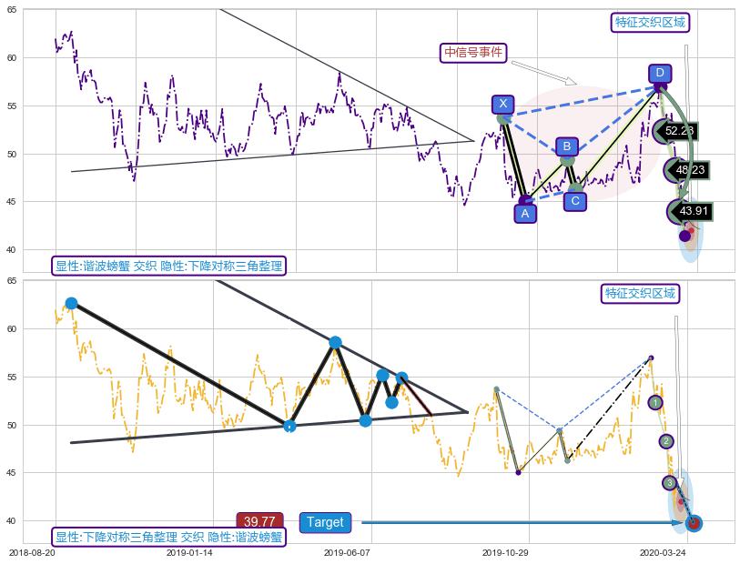 ➢ 谐波螃蟹属【中级别信号事件】下降对称三角整理属【长级别信号事件】中长周期组合信号事件,中长事件长度比43.23%