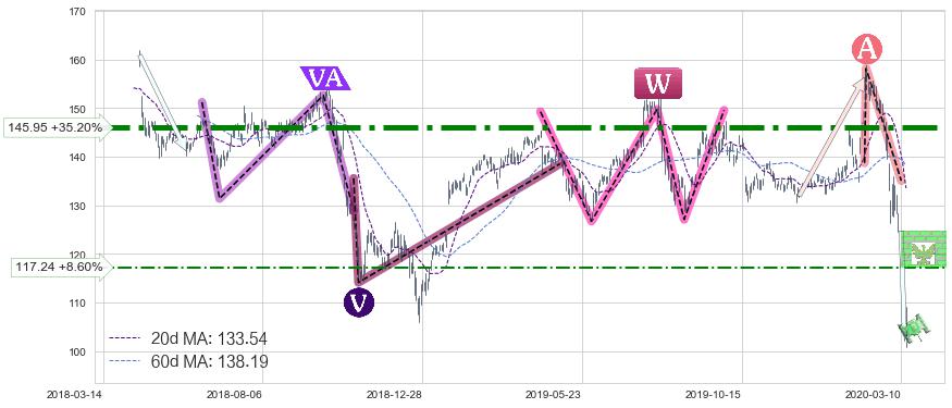 ♘ 阻力价格位145.95,可信任强度97.47%,距离最后交易2020-03-13形成的收盘价格107.95相差 +35.20%