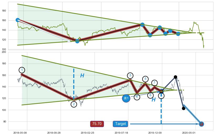 ➣ 【已确认突破】最后价格:107.95与最小【整理】第一目标价格→(2020-05-26: 75.70 )相较: 下跌空间【中等】