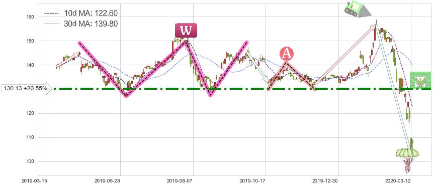 ♘ 阻力价格位130.13,可信任强度80.97%,距离最后交易2020-03-13形成的收盘价格107.95相差 +20.55%