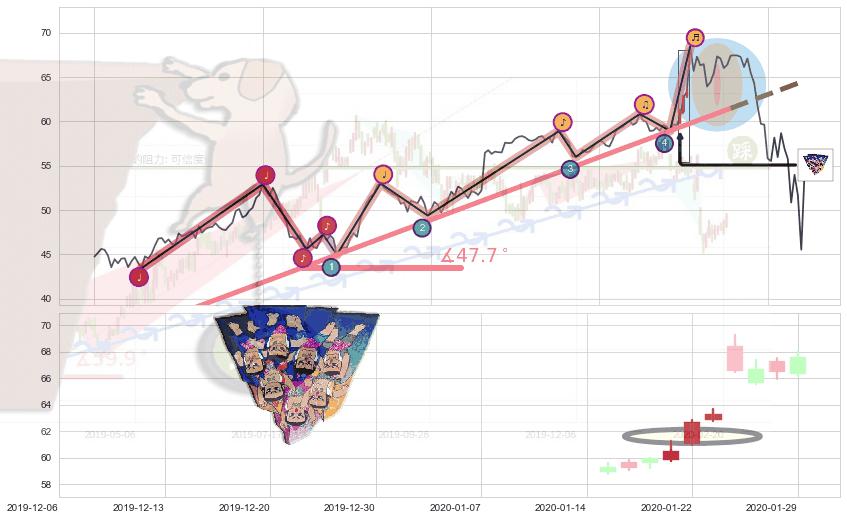 ✂️ 2019-05-20-2020-02-11上升趋势存在反转[风险],其原上升趋势的支撑位(64.59)已破位[强阻力信号],原上升趋势角度: 47.7˚