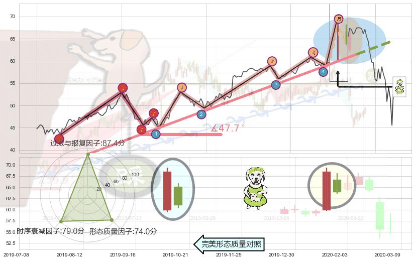 ♘ 支撑价格位44.67,可信任强度61.59%,距离最后交易2020-03-13形成的收盘价格54.43相差 -17.93%
