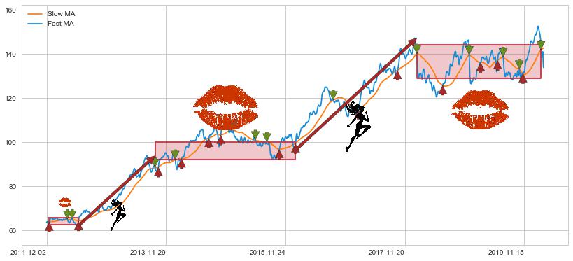 2011-12-19至2012-06-15 慢线与快线多次接触,存在上下穿越,有缠绕