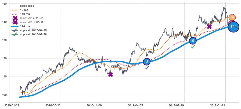 ➢ 最优均线组合共正确确认支撑阻力信号10处,正确确认率 76.92%