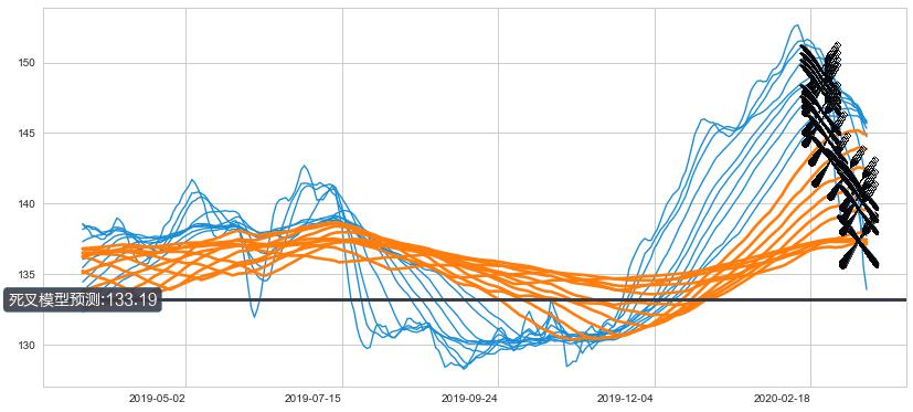 ➣ 110小时均线于(2020-03-10: 140.42)形成【死叉】基于【死叉历史模型】预测死叉后最低波谷价格: 132.27, 死叉后最低价格125.41,已经下跌超出预测最低波谷价格, 预期反弹