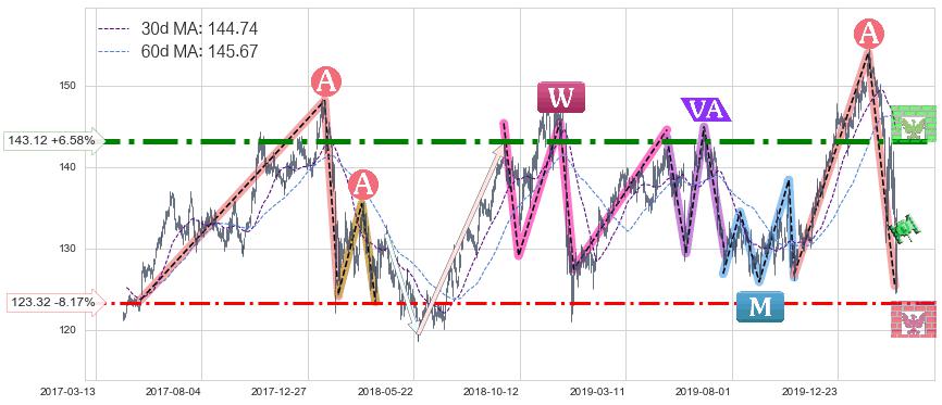 ♘ 支撑价格位123.32,可信任强度68.03%,距离最后交易2020-03-13形成的收盘价格134.29相差 -8.17%