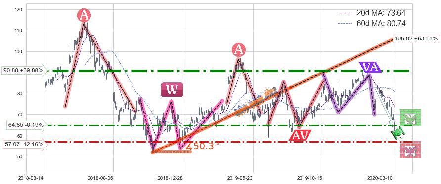 ➣ 【仅预测突破】最后价格:64.97与预测突破价格:68.52→【空间临近】后续最小【整理】第一目标价格→(2020-04-13: 97.89 )