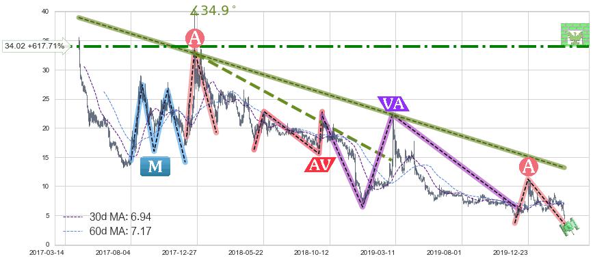 ♘ 阻力价格位34.02,可信任强度75.03%,距离最后交易2020-03-13形成的收盘价格4.74相差 +617.71%