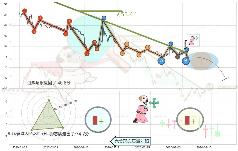 从2018-03-15至2020-03-13,共包含503个交易日,阶段股价下跌-68.85%,阶段股价变动位移路程比: 1 : 27,下跌趋势角度: 53.4