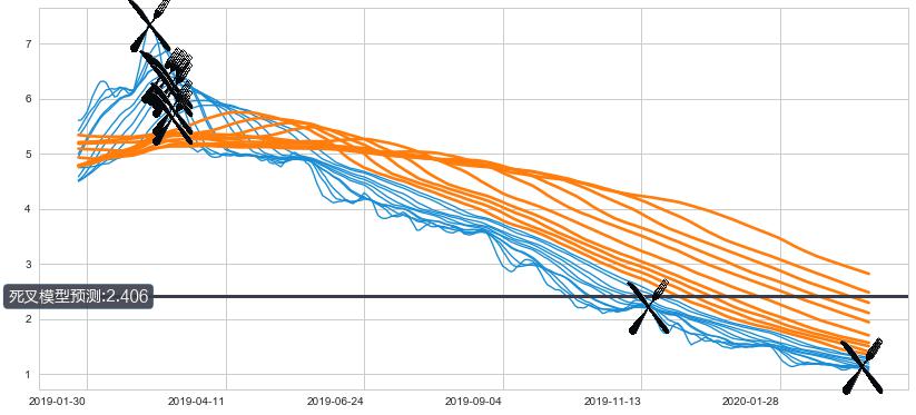 📉 多条均线基于【死叉历史模型】预测最低波谷价格的平均值: 2.406