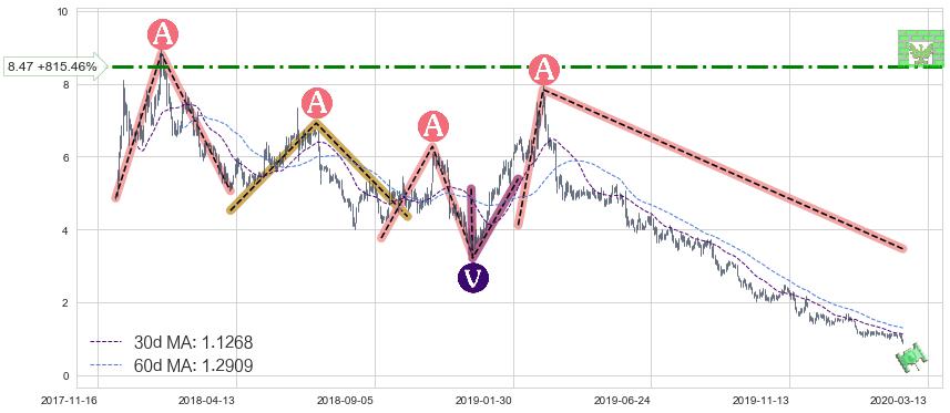 ♘ 阻力价格位8.47,可信任强度61.77%,距离最后交易2020-03-13形成的收盘价格0.9254相差 +815.46%