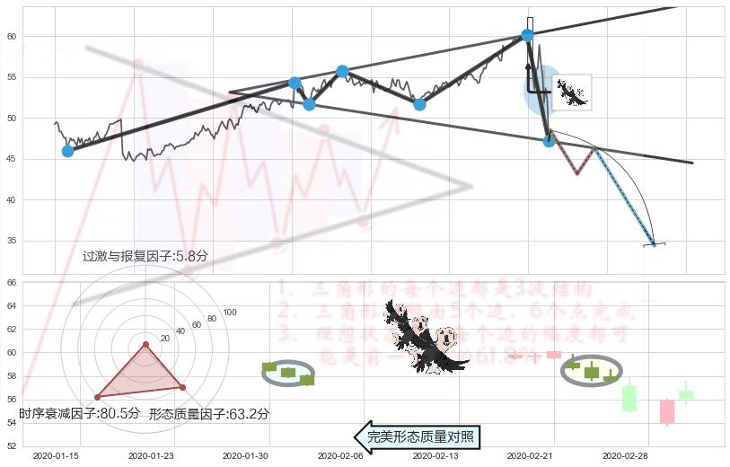 ➢ 三只乌鸦 🔜 扩散三角反转临近支撑猜想转换阻力下跌 综合量化分数:46.70 【中性】
