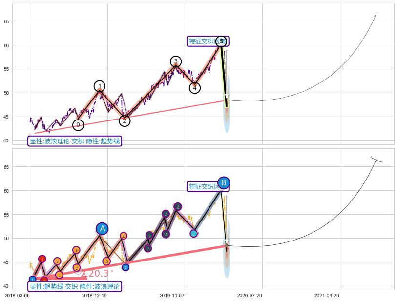 ➢ 波浪理论与趋势线信号事件周期长度级别相同,同周期信号事件