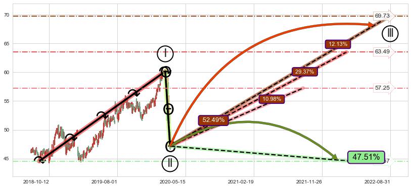➣ 循环浪继续向上【平均值】位置(2022-03-07, 63.49),匹配聚类样本比例55.97%, 可能性概率29.37%