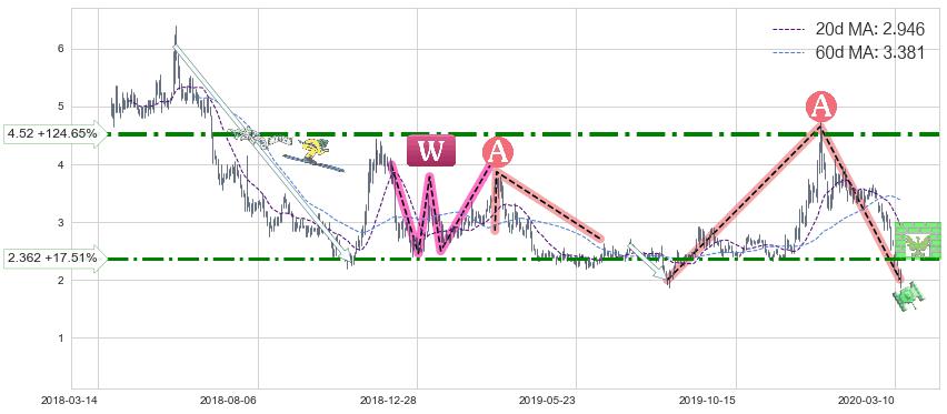 ♘ 阻力价格位2.362,可信任强度67.52%,距离最后交易2020-03-13形成的收盘价格2.010相差 +17.51%