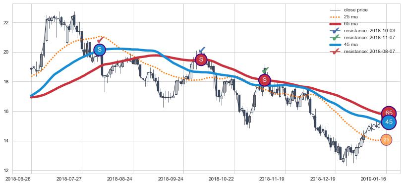 ➣ 65小时均线于(2019-05-22: 15.81)形成【死叉】基于【死叉历史模型】预测死叉后最低波谷价格: 12.63, 死叉后最低价格8.56,已经下跌超出预测最低波谷价格, 预期反弹