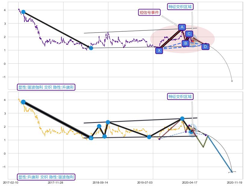➢ 谐波伽利属【短级别信号事件】升旗形属【长级别信号事件】长短周期组合信号事件, 短长事件长度比19.60%