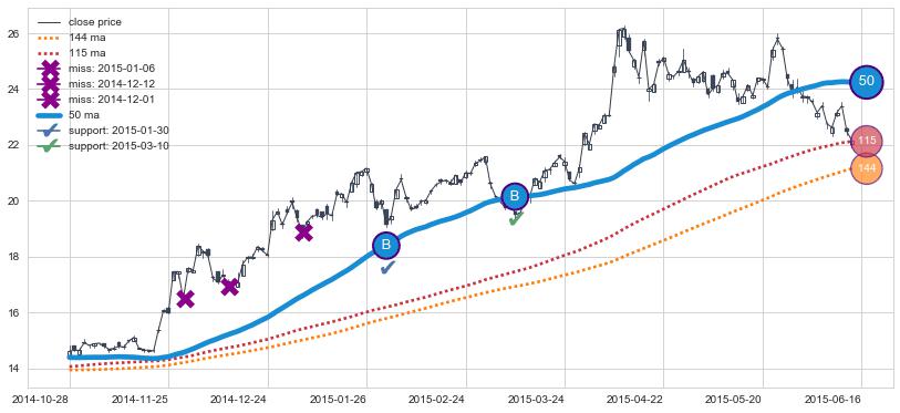 2014-10-28至2015-06-16 慢线与快线呈多头排列, 慢线与快线接触少,无缠绕