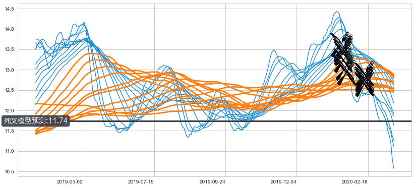 ➣ 160小时均线于(2020-02-12: 12.64)形成【死叉】基于【死叉历史模型】预测死叉后最低波谷价格: 10.99, 死叉后最低价格9.78,已经下跌超出预测最低波谷价格, 预期反弹