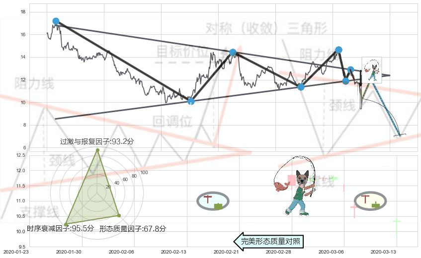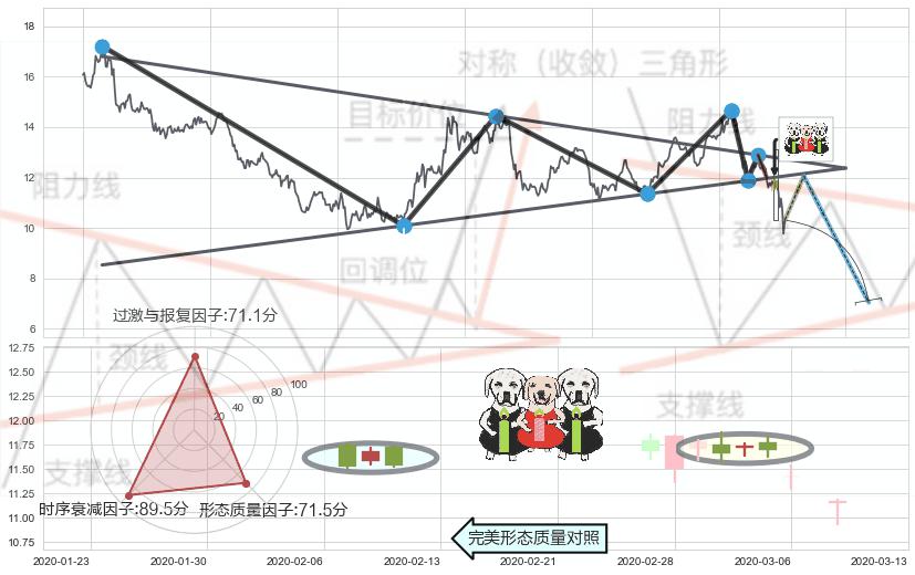 ➢ 下降【对称】三角形整理综合量化分数: 39.48 【强烈看空】