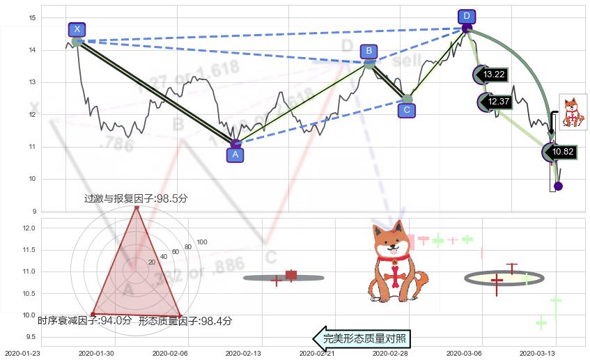 ➢ 🕰 价格走势在2020-03-10至2020-03-11期间形成吊颈线(上吊线),残存影响值:-4.36