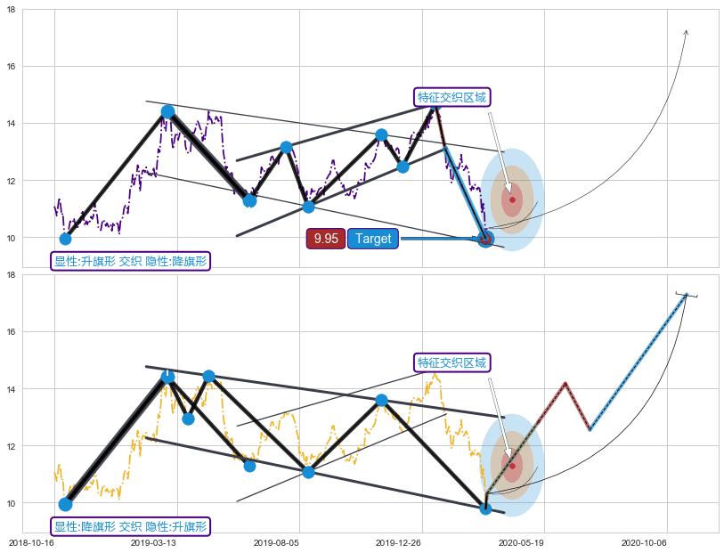 ➣ 升旗形:下跌目标target已达成:猜想强支撑位临近,预期反弹上涨(均值回复)