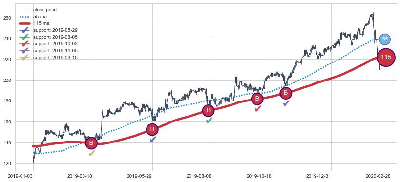 ➢ 最优均线组合共正确确认支撑阻力信号11处,正确确认率 68.75%