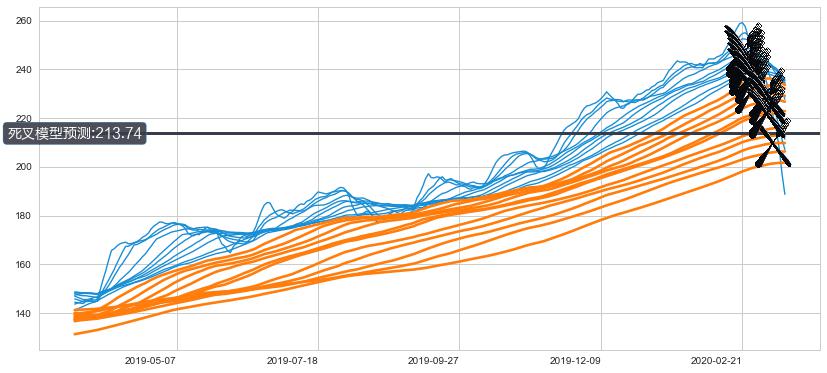 📉 多条均线基于【死叉历史模型】预测最低波谷价格的平均值: 213.74