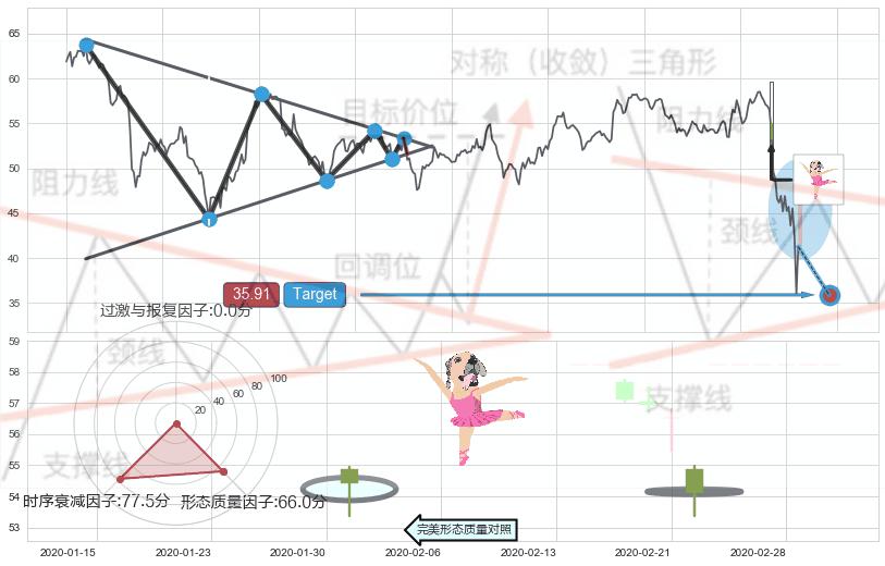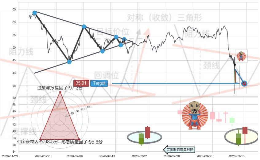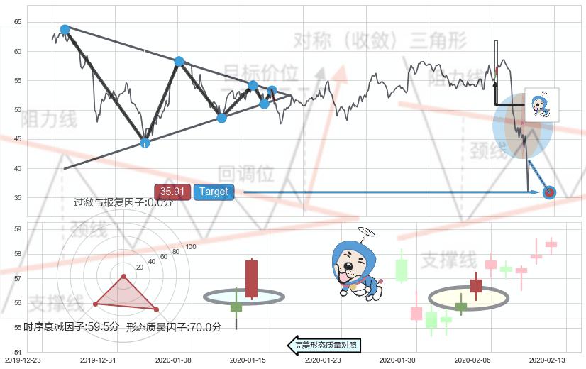 ➢ 下降【对称】三角形整理综合量化分数: 44.59 【偏空】