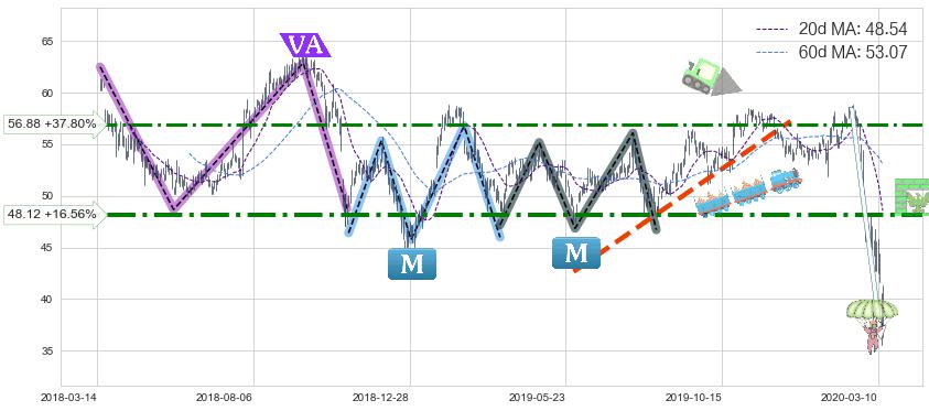 ♘ 阻力价格位56.88,可信任强度68.62%,距离最后交易2020-03-13形成的收盘价格41.28相差 +37.80%