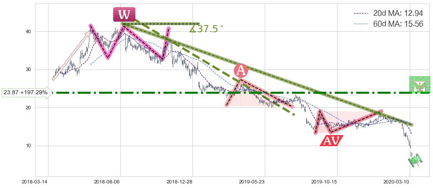 ♘ 阻力价格位23.87,可信任强度81.62%,距离最后交易2020-03-13形成的收盘价格8.03相差 +197.29%