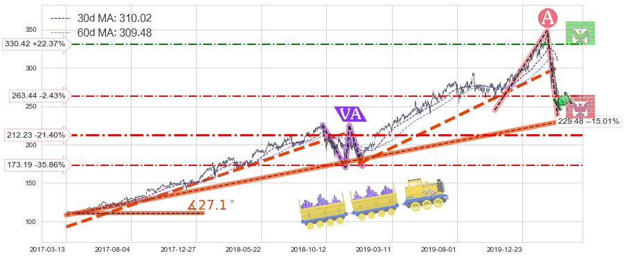 ♘ 在最后的上升阶段2017-03-14至2020-03-11存在 持续未破位的支撑位 ,支撑价格229.48,支撑可信任强度88.19%,其距离最后价格270.01相差 -15.01%