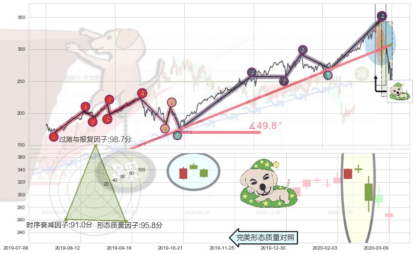 从2018-04-06至2020-03-11,共包含486个交易日,阶段股价上涨53.69%,阶段股价变动位移路程比: 1 : 10,上涨趋势角度: 49.8
