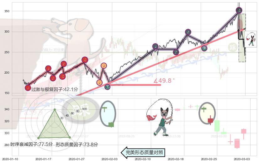 ➢ 2018-04-06-2020-03-11上升趋势存在反转[风险],其原上升趋势的支撑位(307.09)已破位[强阻力信号],原上升趋势角度: 49.8˚