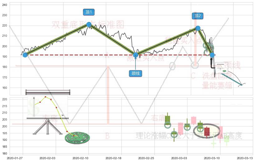 ➣ 【已确认突破】双重顶 起点:2019-04-24,突破点:2020-03-09,形态共221交易日