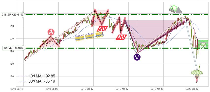 ♘ 阻力价格位192.32,可信任强度76.74%,距离最后交易2020-03-13形成的收盘价格177.13相差 +8.58%