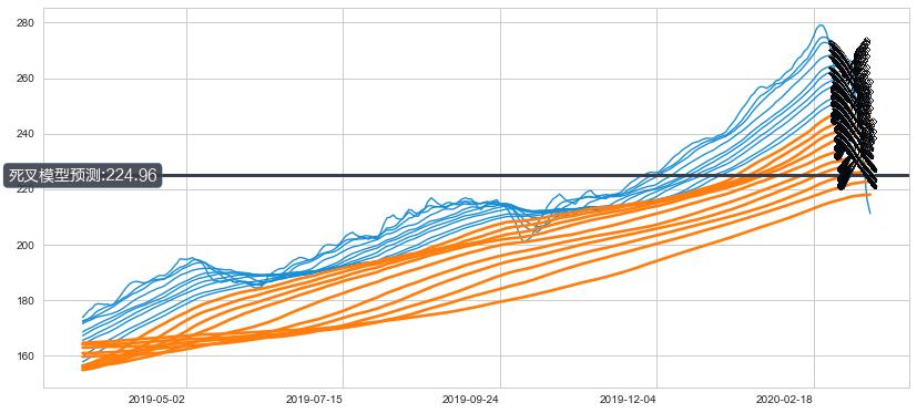 📉 多条均线基于【死叉历史模型】预测最低波谷价格的平均值: 224.96