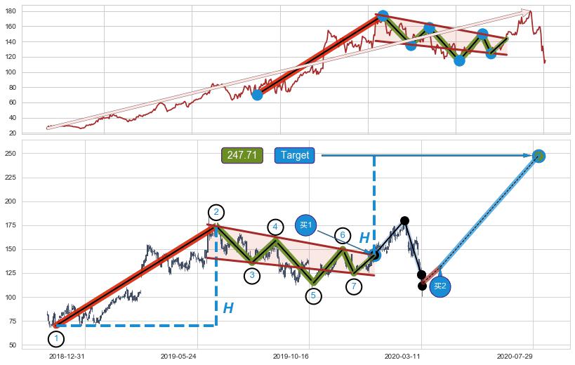 ➣ 最小中继整理涨幅→𝐇: 103.95 (𝐇旗杆的长度:旗杆起点→顶点)