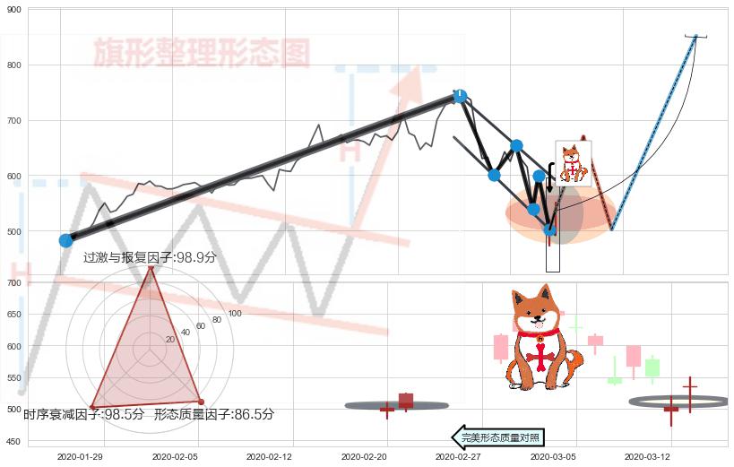 ➣ 【未确认突破,预测即将形成突破】降⚑旗形起点:2019-11-06, 预测突破点:2020-03-17,形态共90交易日