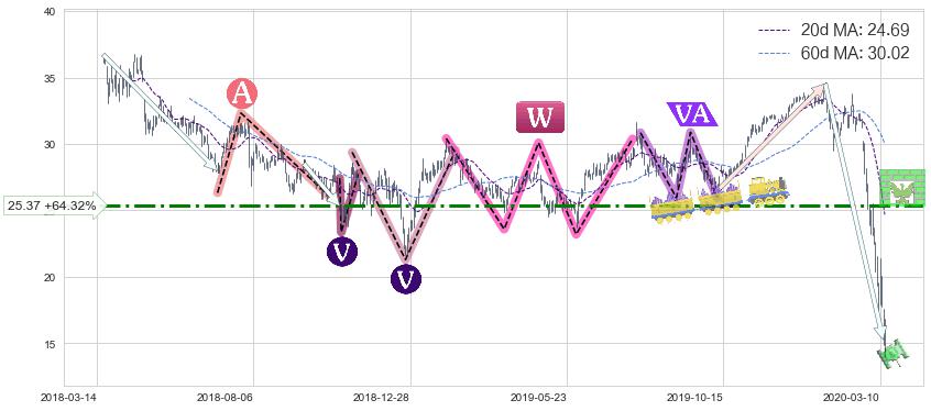 ♘ 阻力价格位25.37,可信任强度69.37%,距离最后交易2020-03-13形成的收盘价格15.44相差 +64.32%