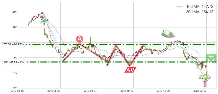 ♘ 阻力价格位154.09,可信任强度76.41%,距离最后交易2020-03-13形成的收盘价格141.68相差 +8.76%