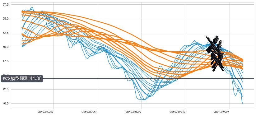➣ 70小时均线于(2020-01-29: 48.94)形成【死叉】基于【死叉历史模型】预测死叉后最低波谷价格: 44.19, 死叉后最低价格36.42,已经下跌超出预测最低波谷价格, 预期反弹
